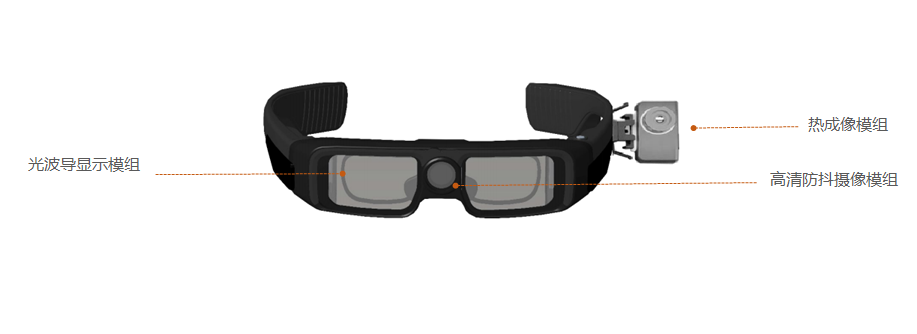 这款测温智能眼镜主要由光波导显示模组,热成像模组以及高清防抖摄像模组,这三部分组成。